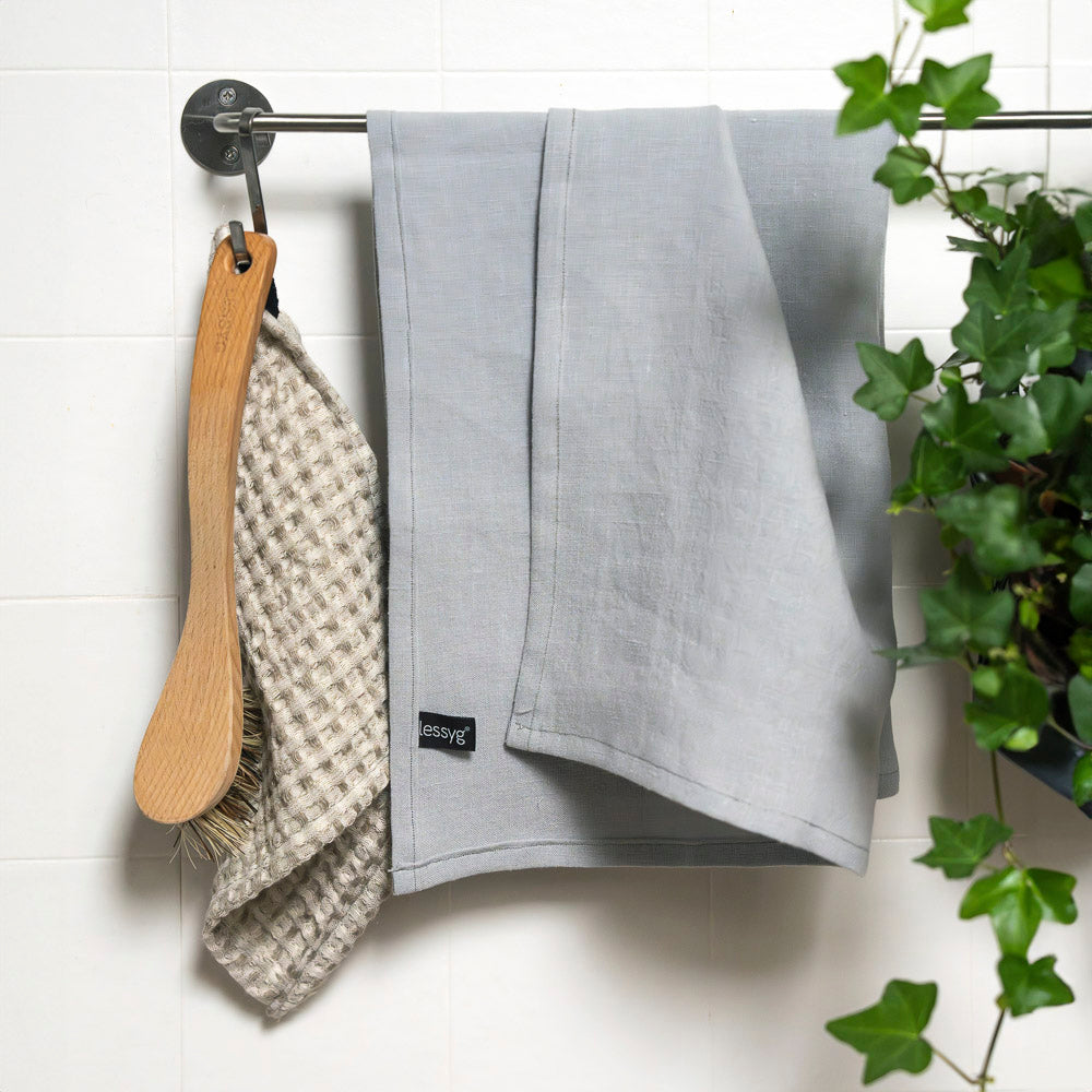 Dieses Geschirrtuch ist der ideale Partner für deine lessyg Universalreiniger – streifenfrei beim Glasreiniger, saugstark beim Spülmittel, hygienisch in Kombination mit der natürlichen Basis. Alles aus einer Hand, alles mit den gleichen Werten.